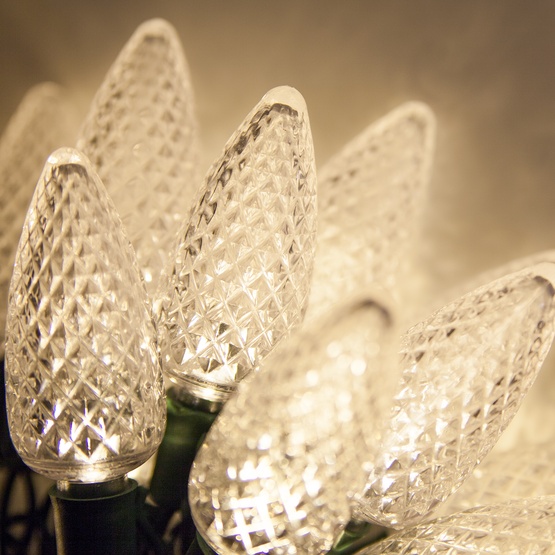 C9 LED Christmas Lights Use our C9 LED Christmas lights to create bold outdoor Christmas light displays. LumynART brand UL listed dimmable cool white SMD LED faceted lens C9E17 base with 3. The 25 lights cast a soft shimmering glow on your tree garland or roof and the 16-foot lighted length makes it easy to decorate your space for the season.