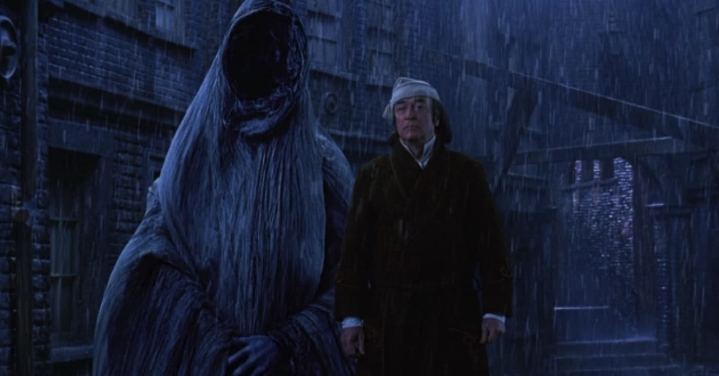 Here the narrator describes the scene when the Ghost first appears to Scrooge. 19920101Starring Frank Oz Steve Whitmire Jerry Nelson Dave Goelz and Michael CaineWant to se. Dickens shows a solemn and spooky spirit in the Ghost of Christmas Yet to Come.